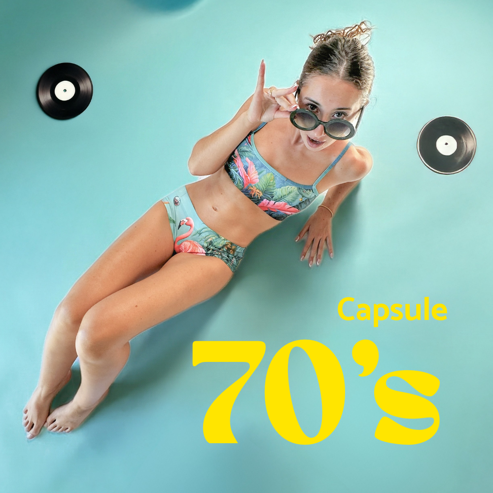 Des pièces lingerie 2-en-1 inspirées des années 70, aux motifs rétro, couleurs chaudes et énergie vintage ultra feel good.